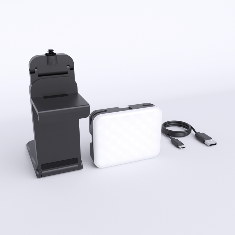 LED streaming light with 0-100% brightness control, CRI95, and a color temperature scale from 2700K to 6500K.